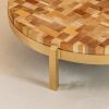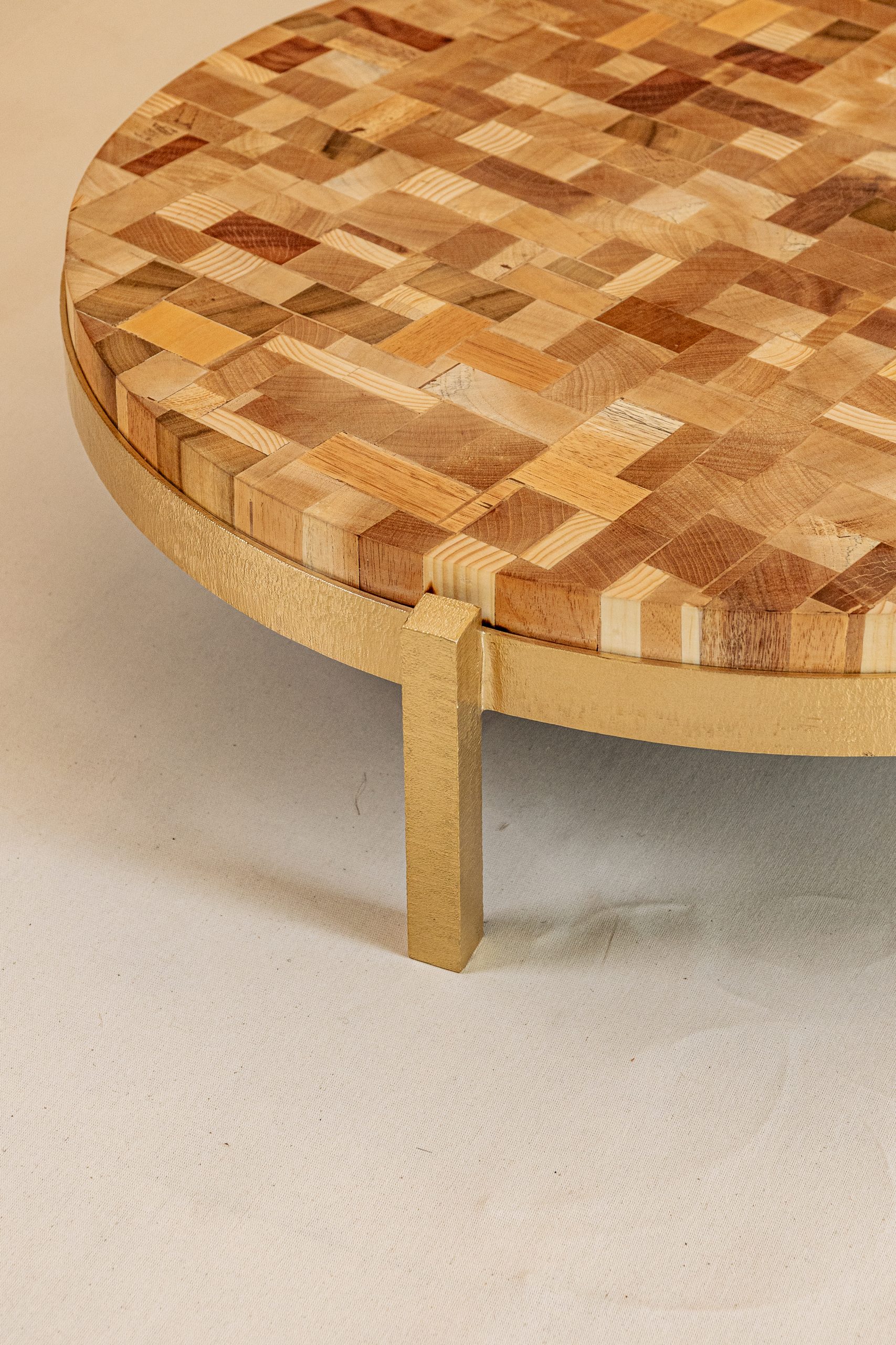 Mesa de centro Macarena, elaborada por un mix de maderas, patas y platina fabricadas en bronce ó con reborde y base fabricadas en bronce.