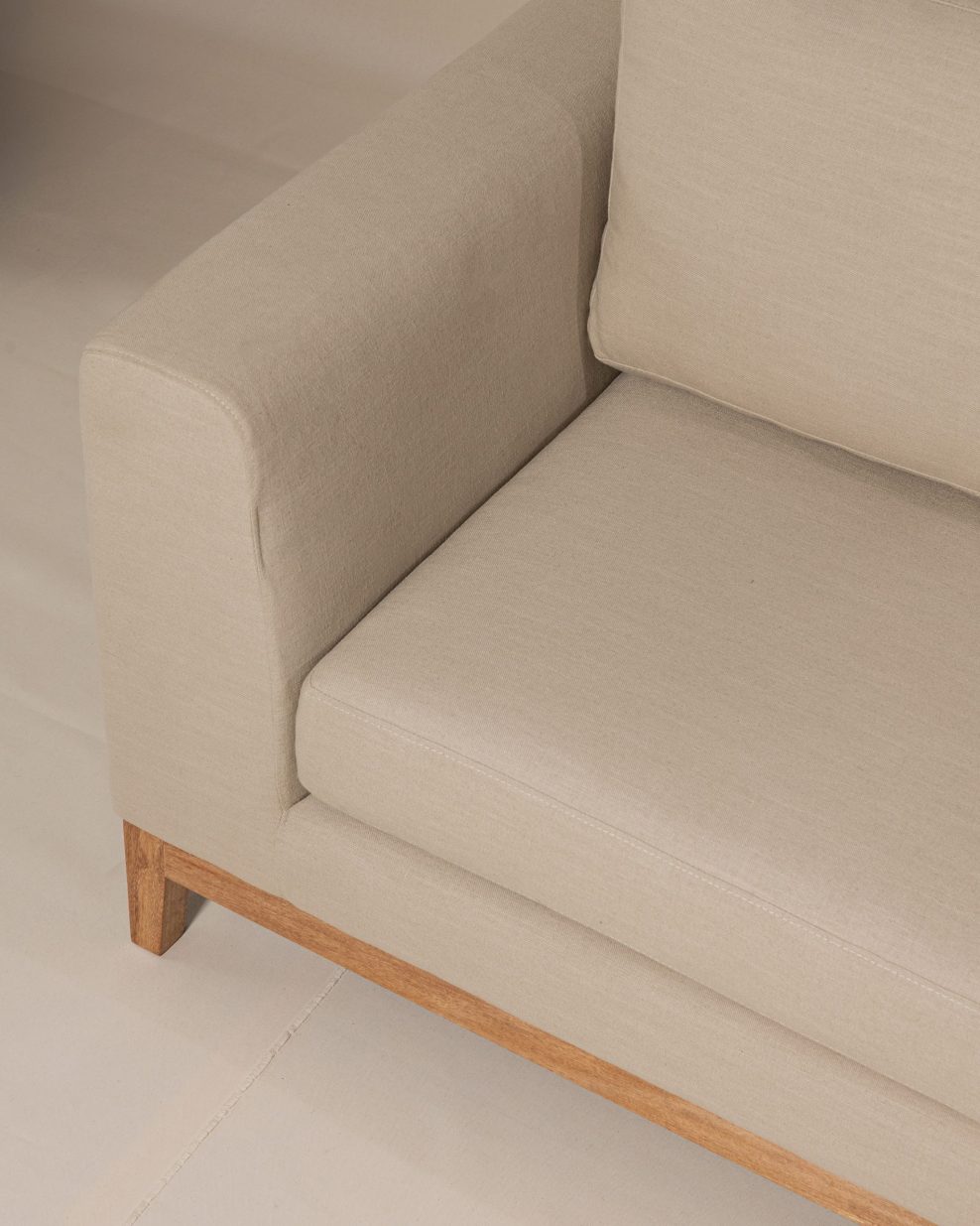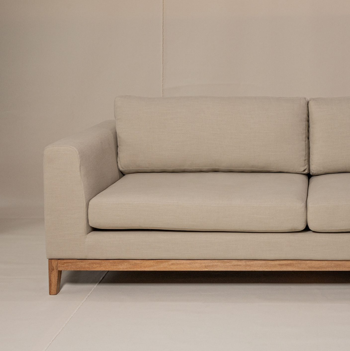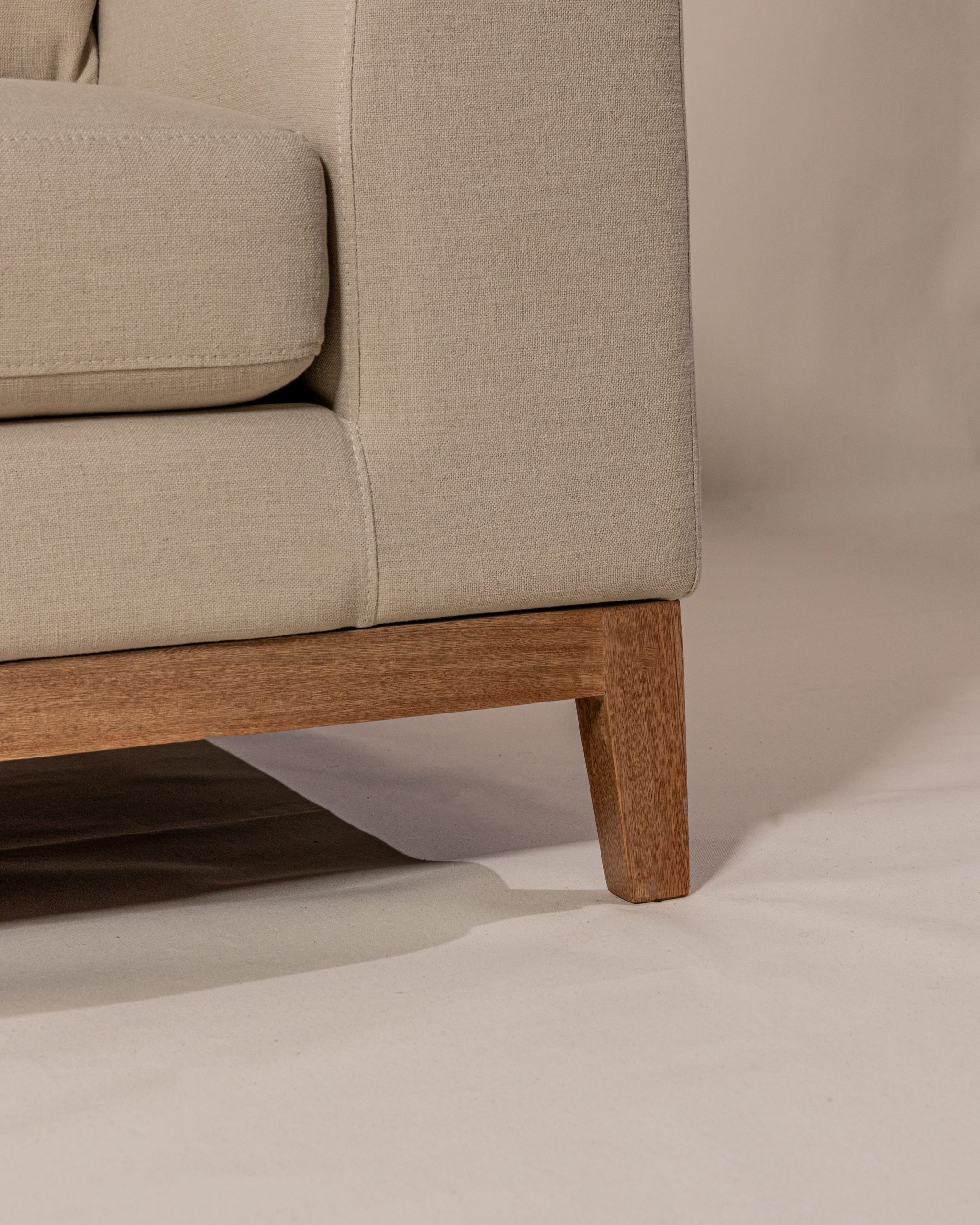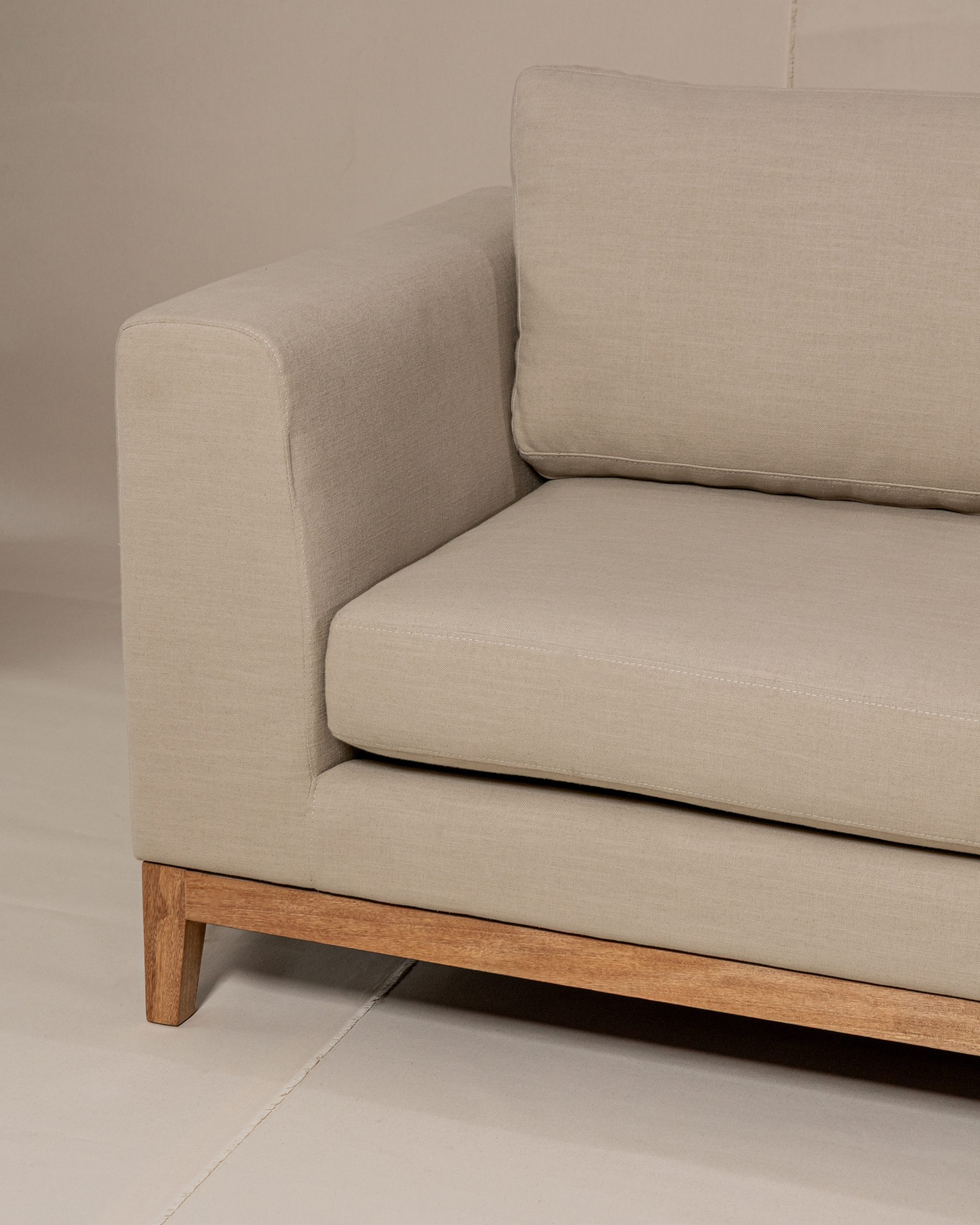 Sofa Salamanca, elaborado en madera de cedro flor morado, base descubierta, tapizado en lino belga con tecnologia FibreGuard, antifluido y antimanchas de trafico pesado